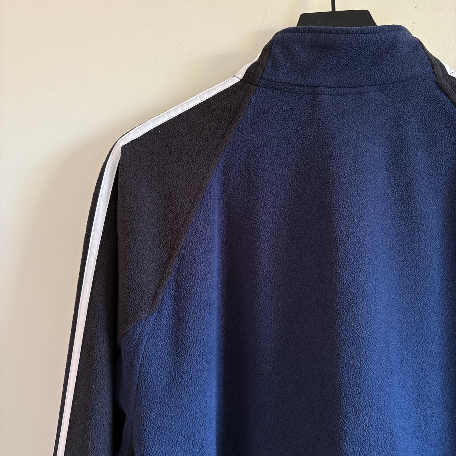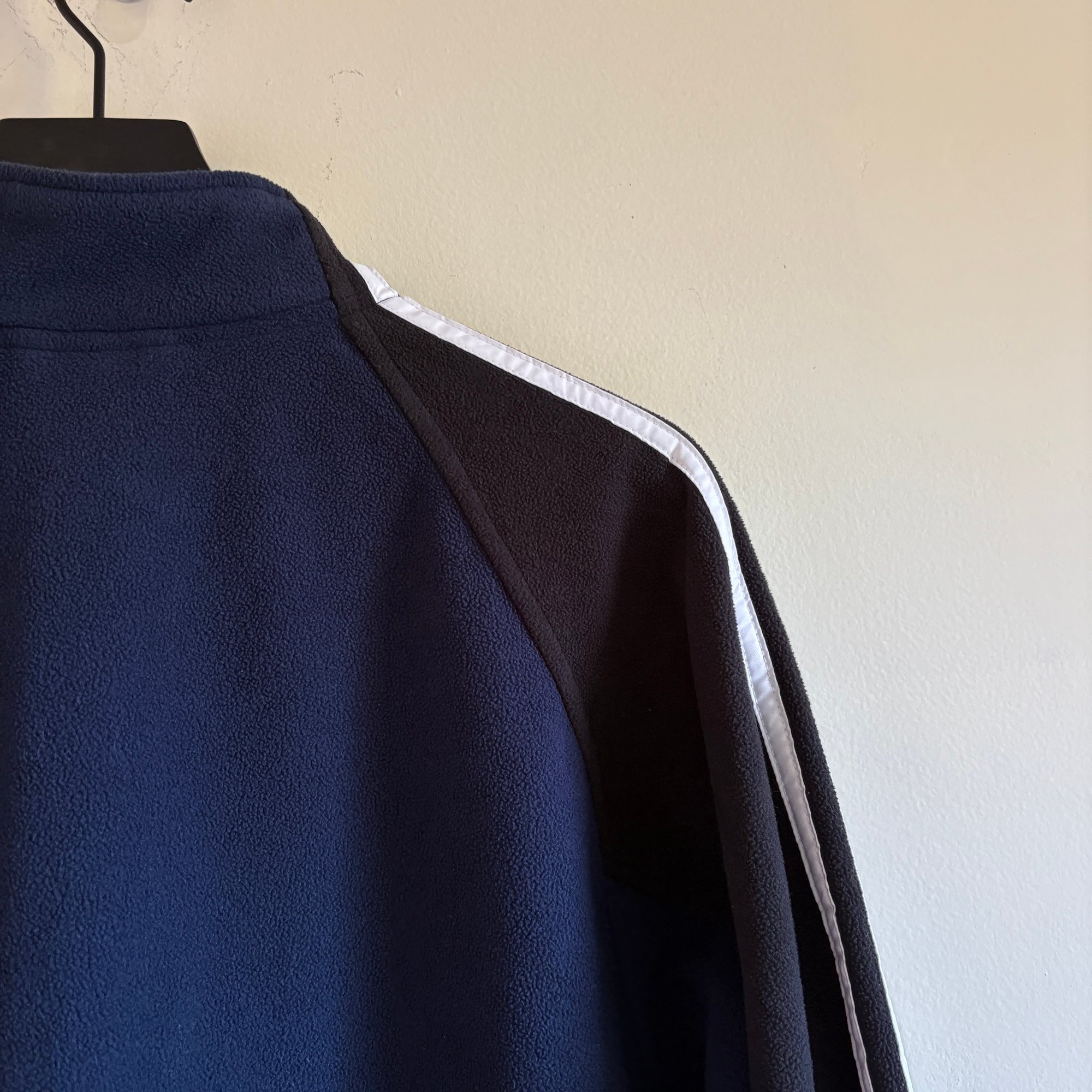Fair Vintage Condition - light streaks on zipper (looks like paint), small hole on back, stitching undone on arm stripe (see photos)