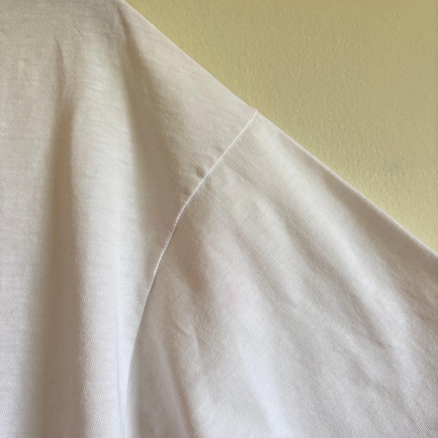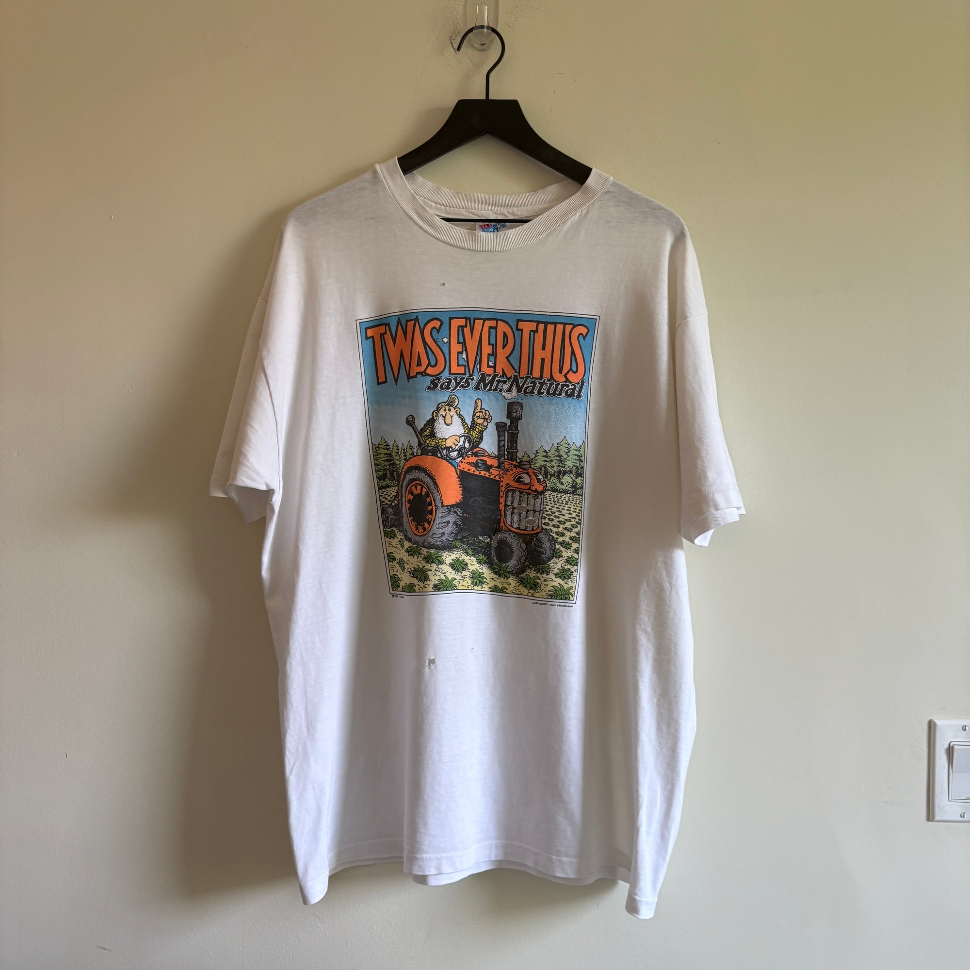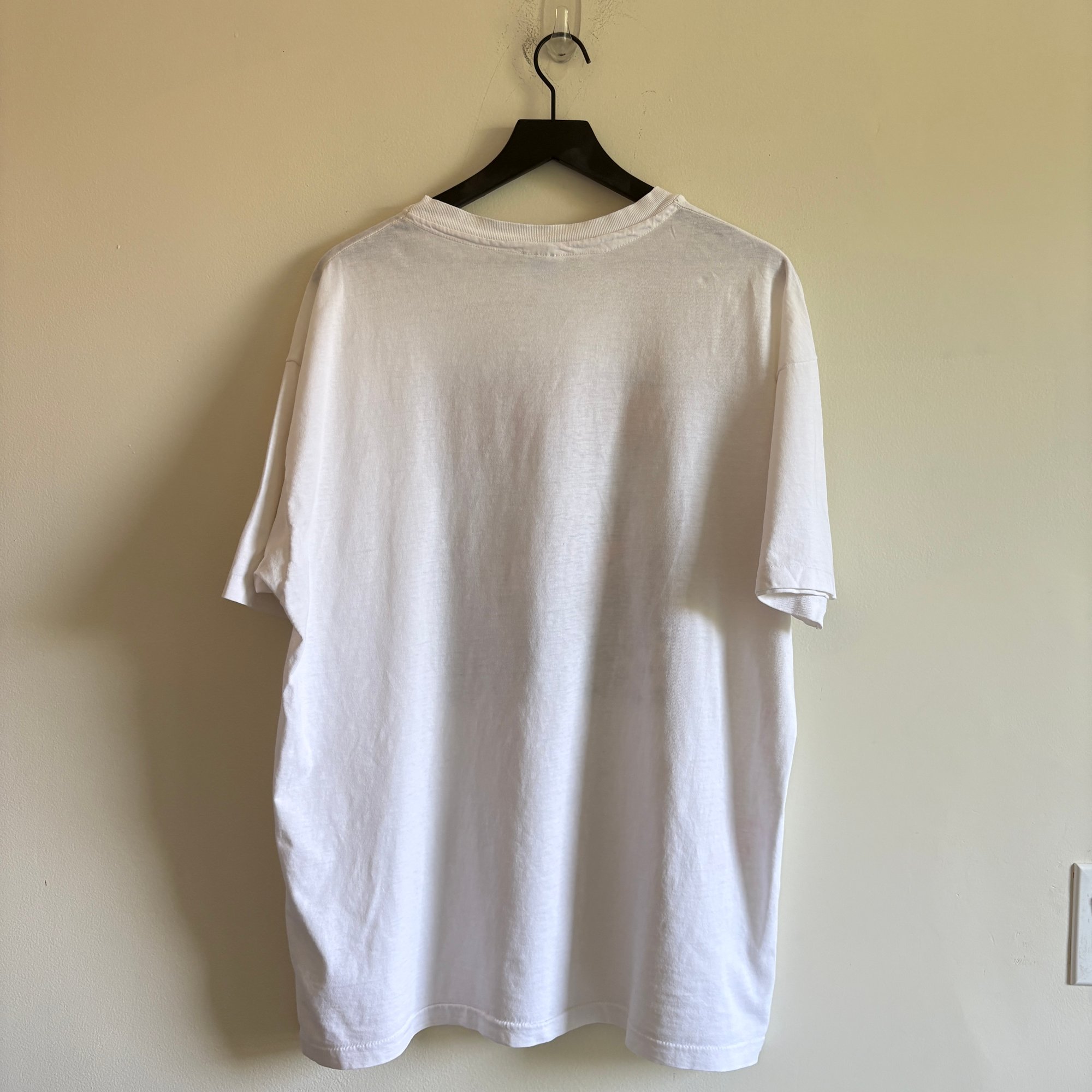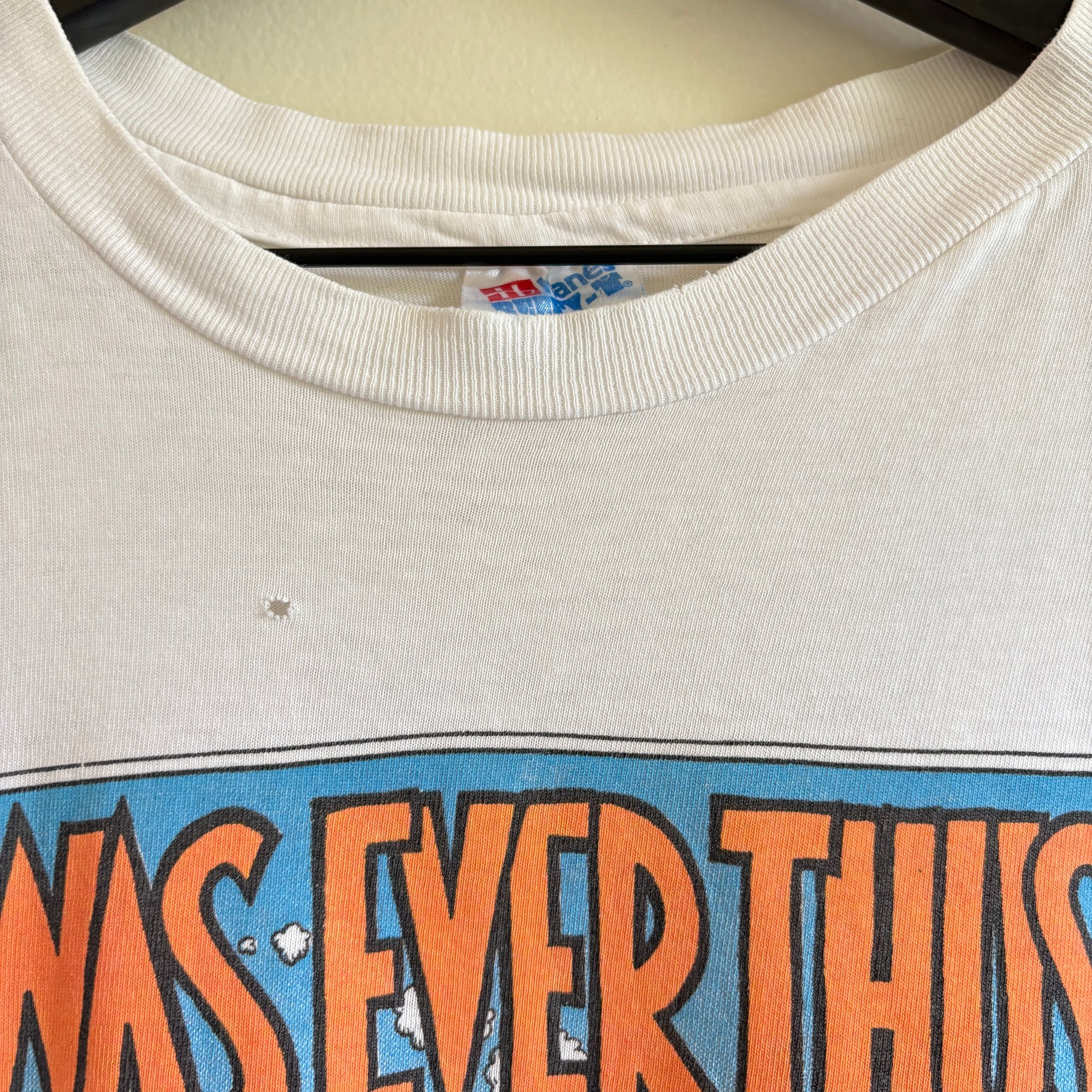Well Worn Vintage Condition - wear/fading throughout, a couple holes, some very faint dye transfer on side and sleeve (see photos)